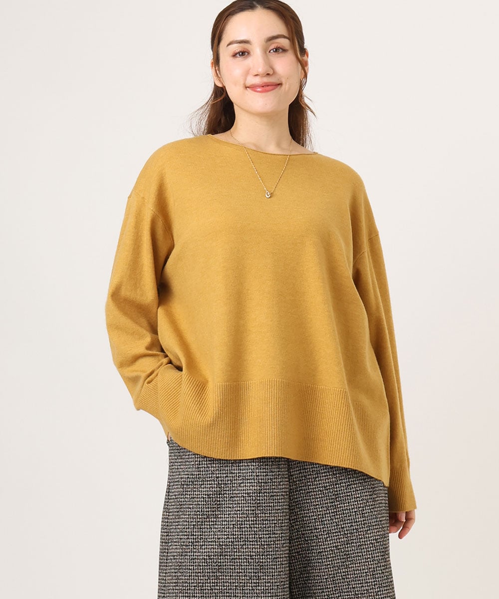 裾や袖口のリブを広めにとってよりボクシーな印象に仕上げたニット。