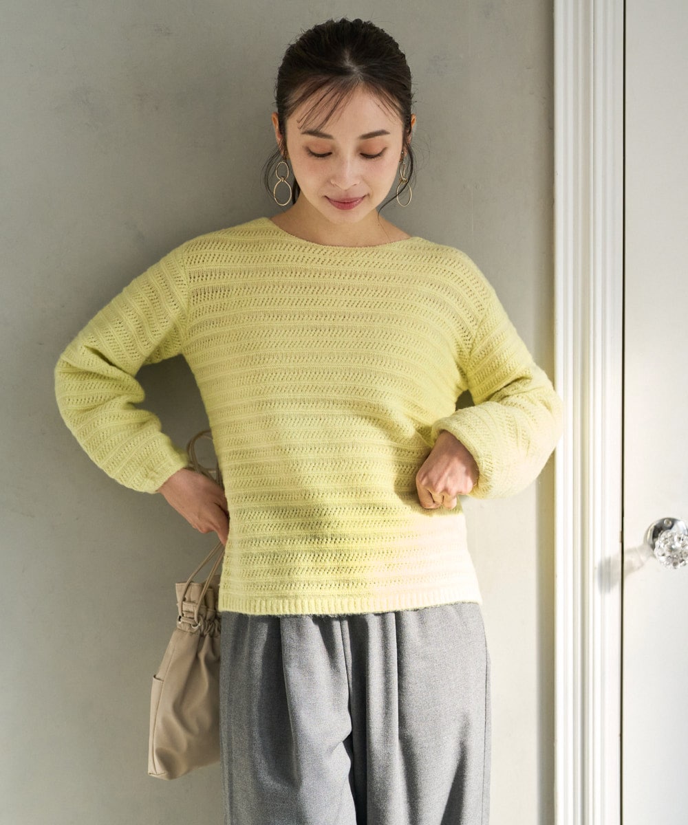 【小さいサイズ】シアーボーダーボリュームパフスリーブニット/洗える