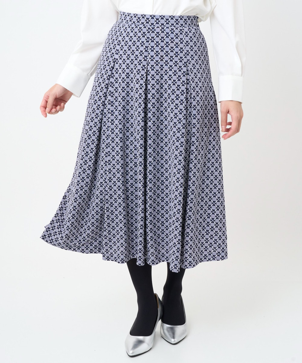 【小さいサイズ】スクエア幾何柄フレアースカート/洗濯機で洗える