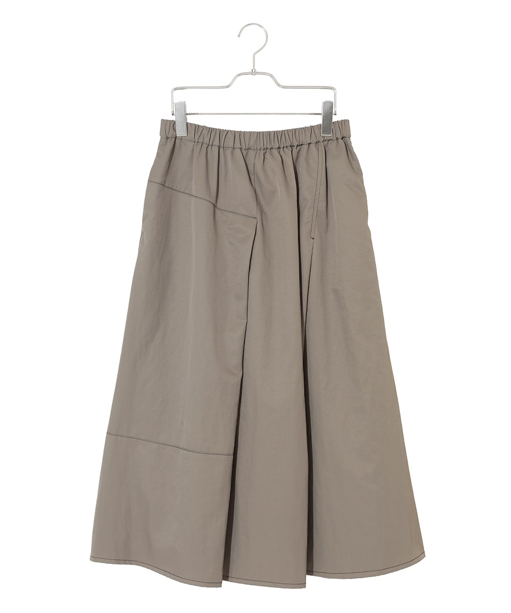 ステッチデザインフレアスカート 。タックディテールをアシンメトリーに配置したステッチデザインがモード感漂う一枚。マットな質感とナチュラルさがスタイリングを品良くまとめてくれます。ウエストは総ゴム仕様で、ラクな穿き心地です。