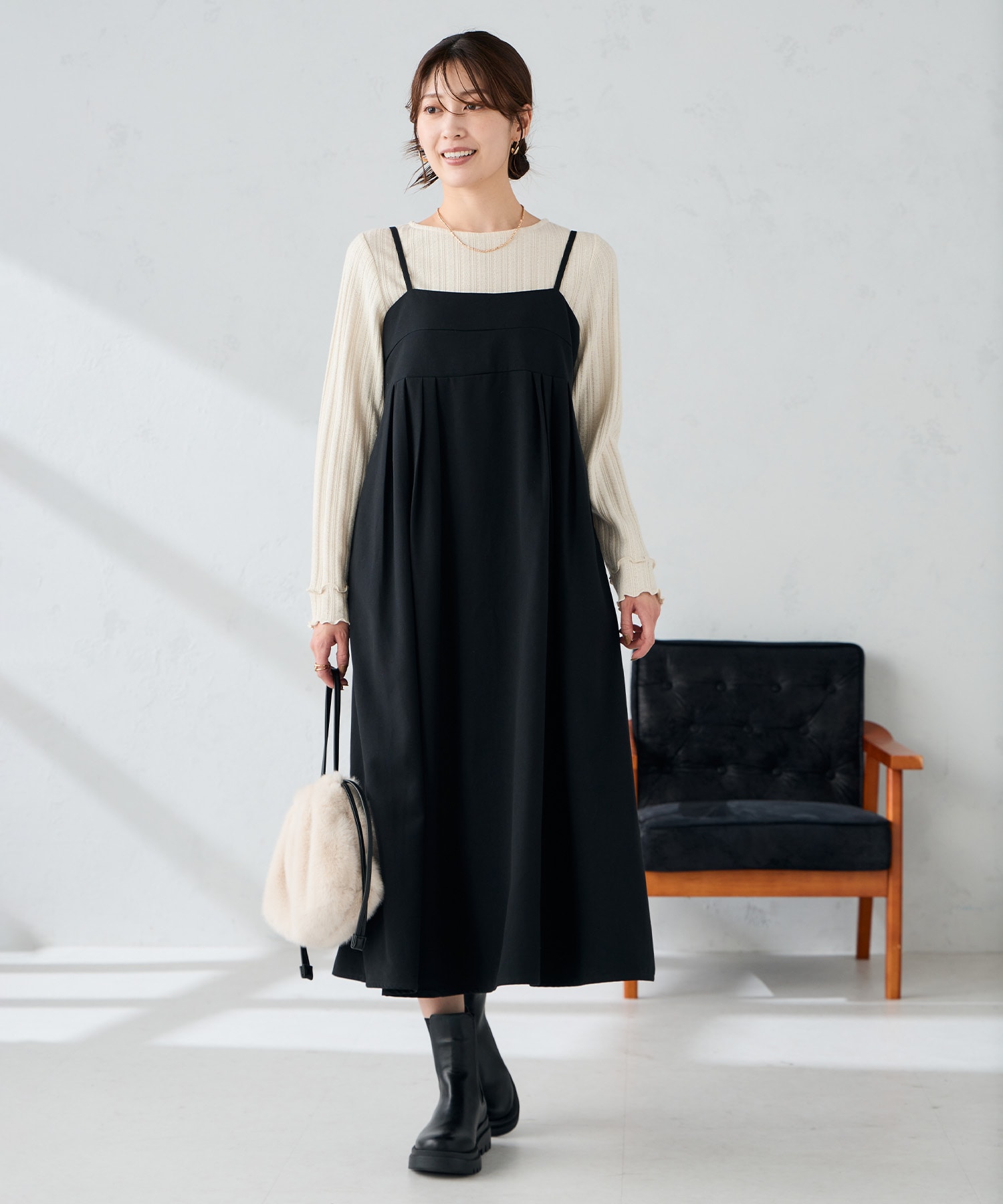 インに着たキャミワンピースは