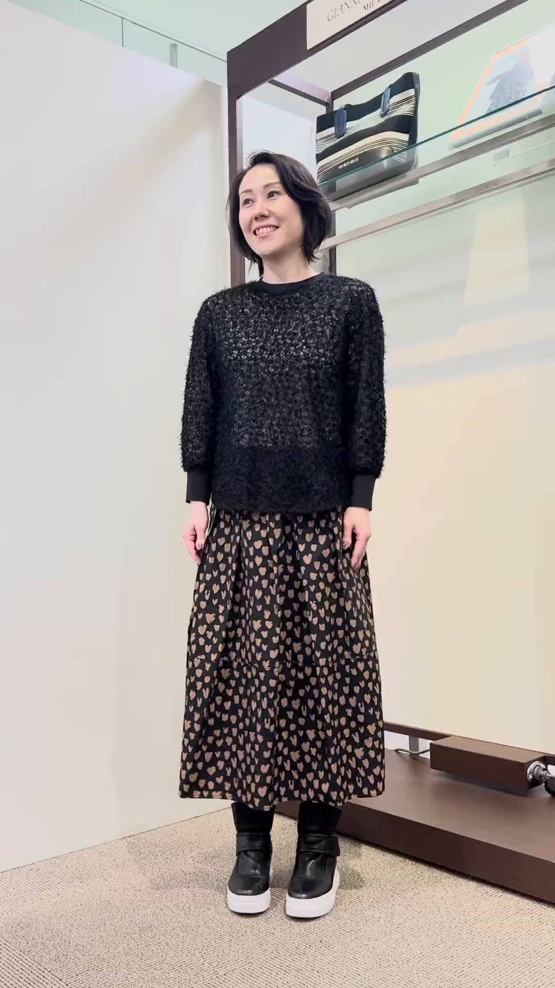 ハート柄ドットプリントフレアスカートと合わせて、フェミニンなコーデを楽しむのもおすすめ。