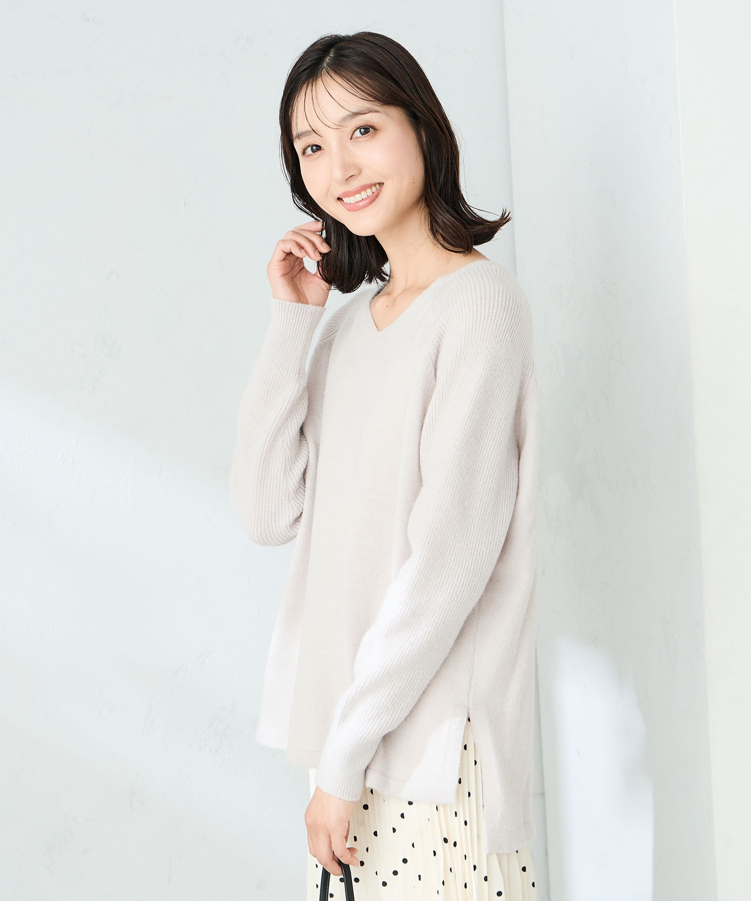 甘すぎない、大人のふんわりラメニットはSサイズ着用でゆったりタイプ