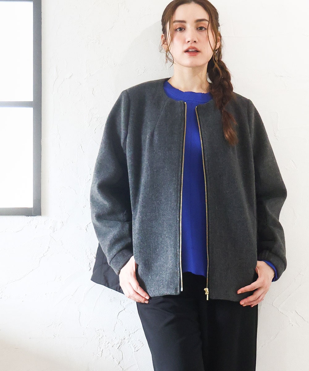 ウールタッチでもお手入れ楽ちんなポリエステルジャージーはかさ高で温かくこれから長くご着用いただけます。