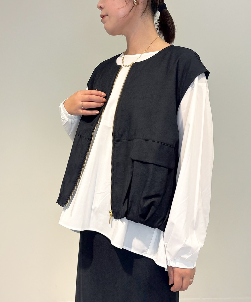 ベストはドロップしたショルダーのこなれ感あるボックスフォルムが◎