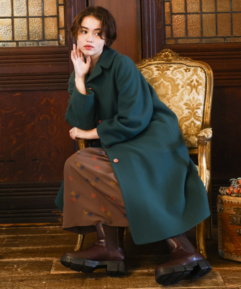 身長:162cm /普段着用サイズ:M〜L /着用サイズ:M ■コート■ ホコモモラのクラシカルなロングコートはバックスタイルのタックや縦の切り替えでゆったりとした着心地を実現し、着膨れ感を軽減。普段Lサイズが多い私でもMサイズで問題なく着られました!裏地もかわいいので脱いだ時にもテンションが上がりますよ♪ ■ワンピース■ ドットが可愛いワンピースは体型カバーに優れたデザインで、ぽっこりお腹やがっちり型の私でも自然にシルエットを整え、スマートな印象に。普段Lサイズの私でもMサイズで問題無く着られました!肌寒い季節には薄手のインナーと合わせたいです。