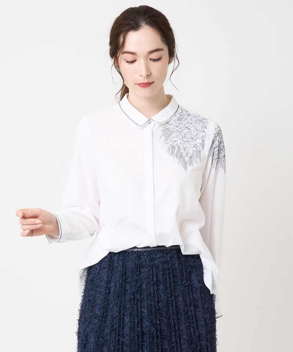 華やかなゴブラン風プリントや刺繍入りブラウスを羽織りとして