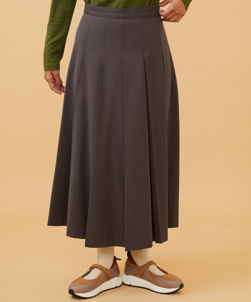 スカートは適度な厚みの生地で長めの着丈がきちんと感もプラスしてくれます。
