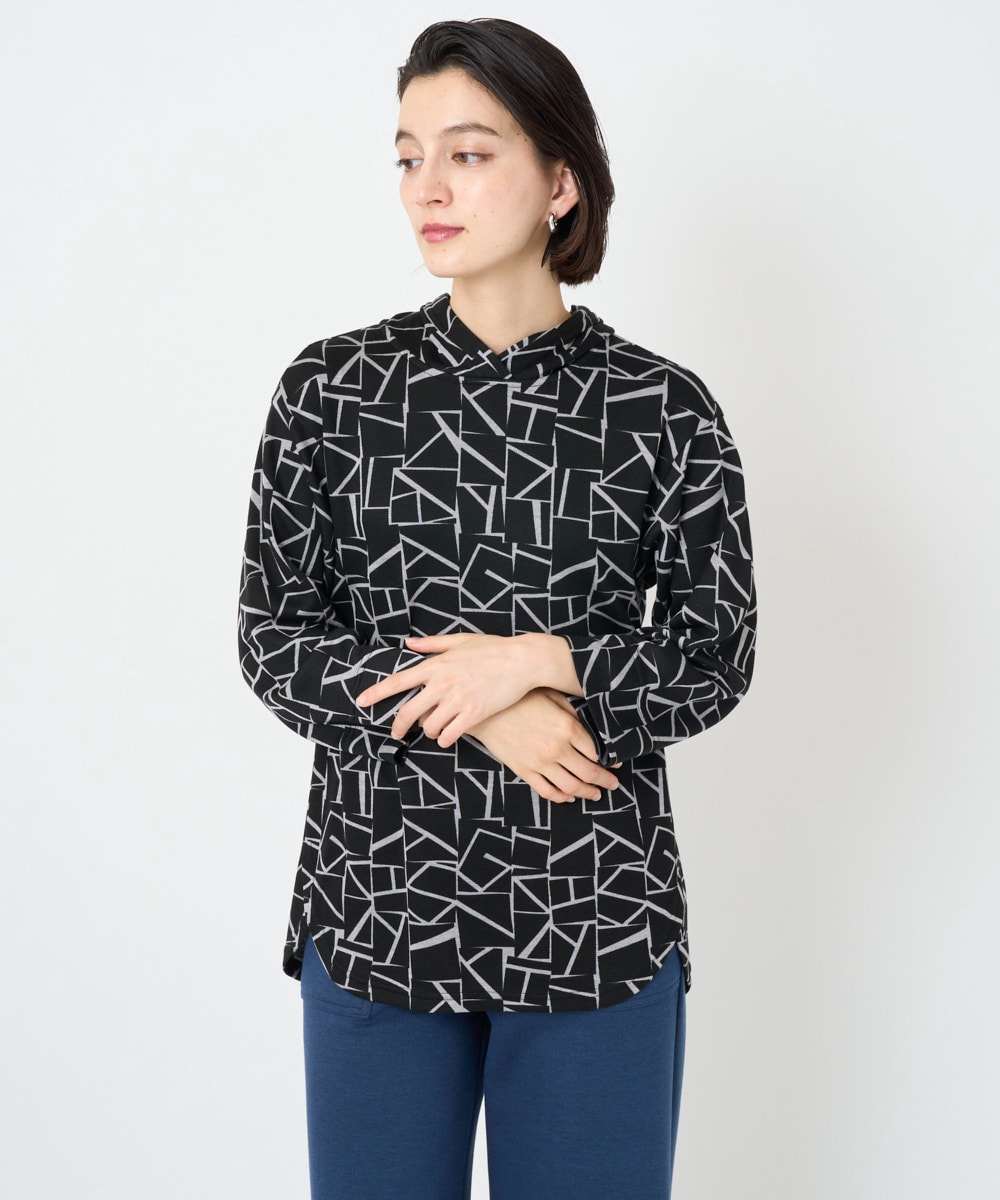カットソーは軽くレッシュオリジナルのジオメトリックプリントが着映えする一枚。