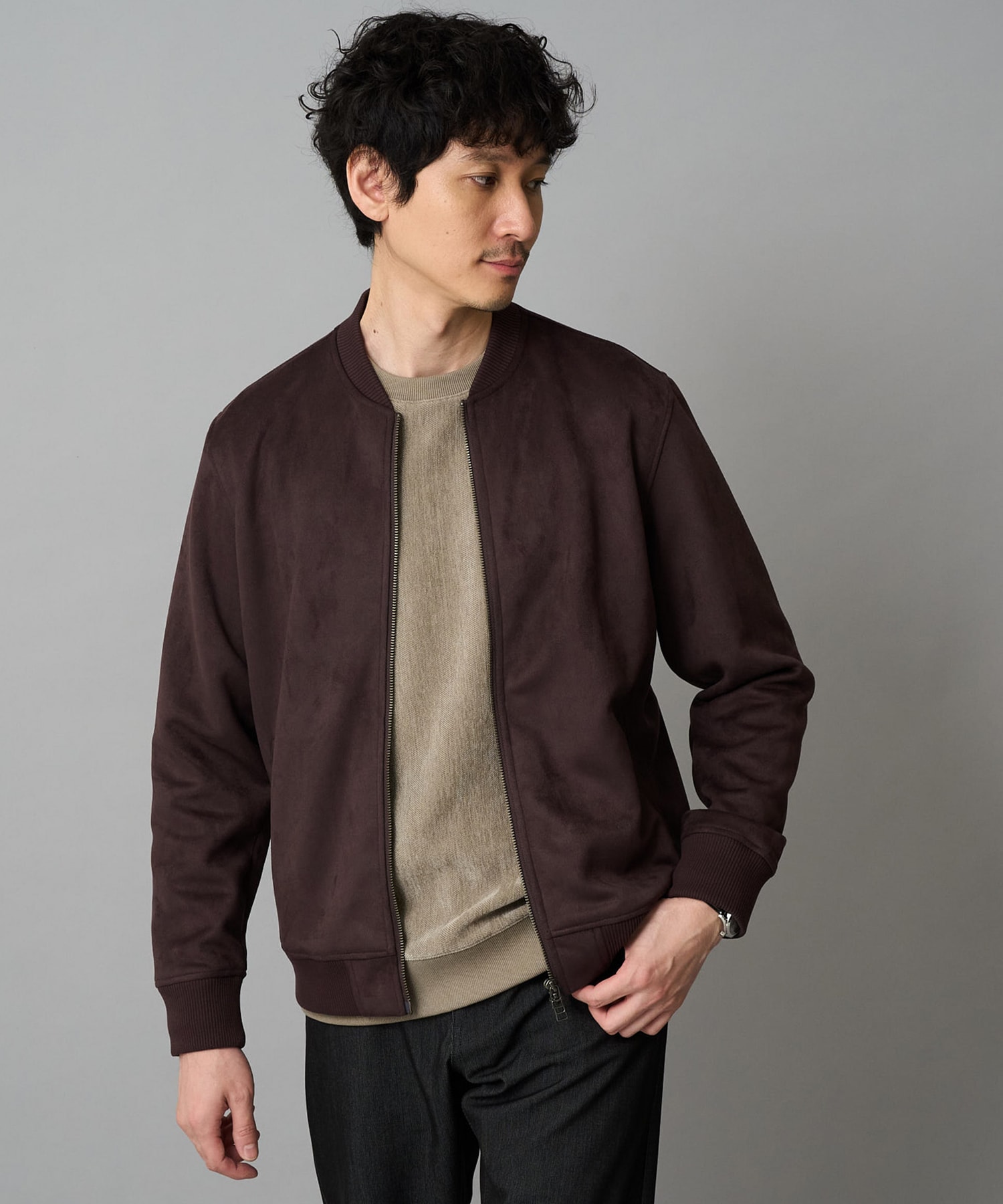 ・フェイクスエードリブブルゾン