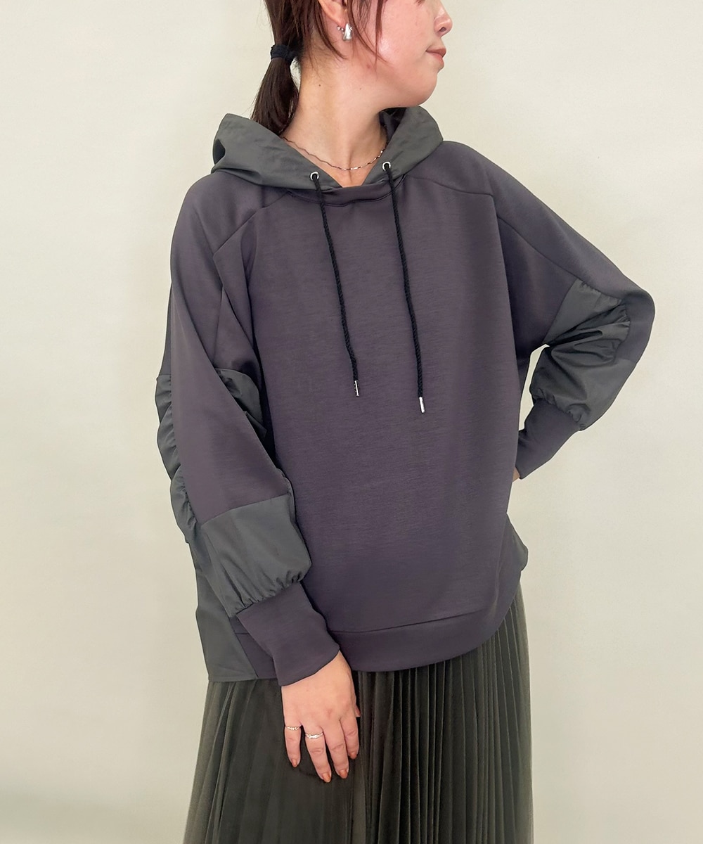 布帛ジョイントフーディーパーカーは、