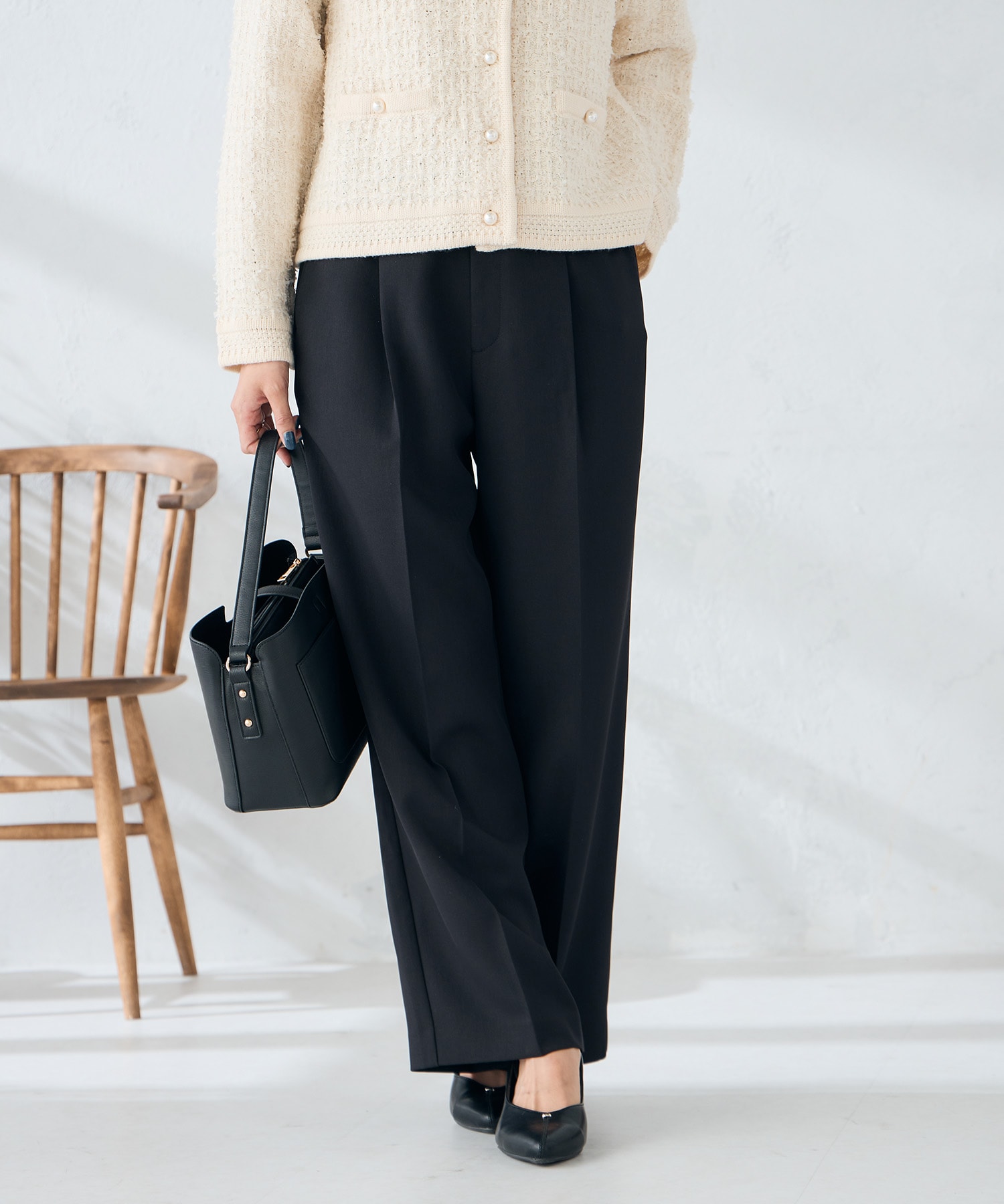【洗える/イージーケア/ストレッチ】パウダーツイルワイドストレートパンツ