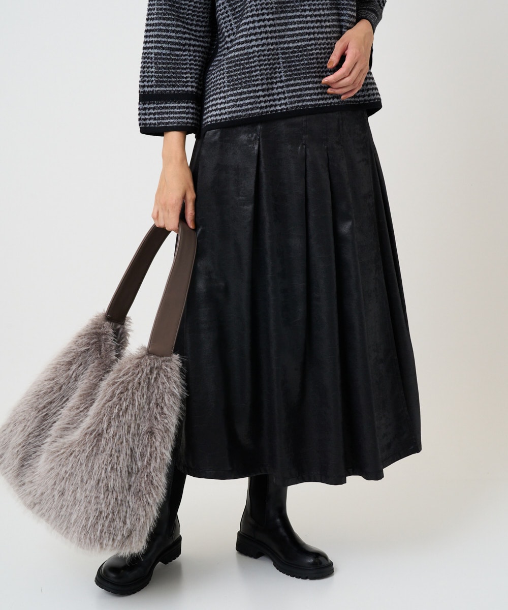 レザー×スカートで甘くなりすぎないスカート。
