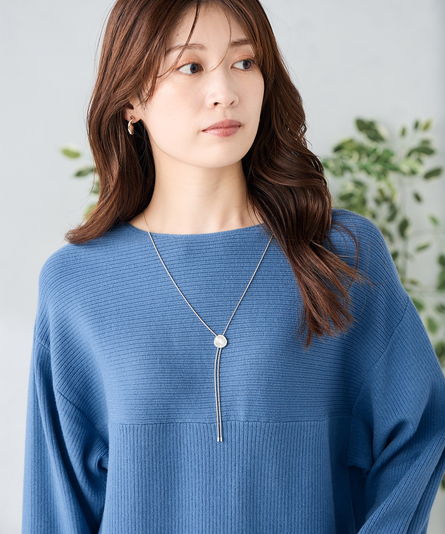 ニットはゆったりめの形、体のラインを拾わないので体型カバーになり安心♪