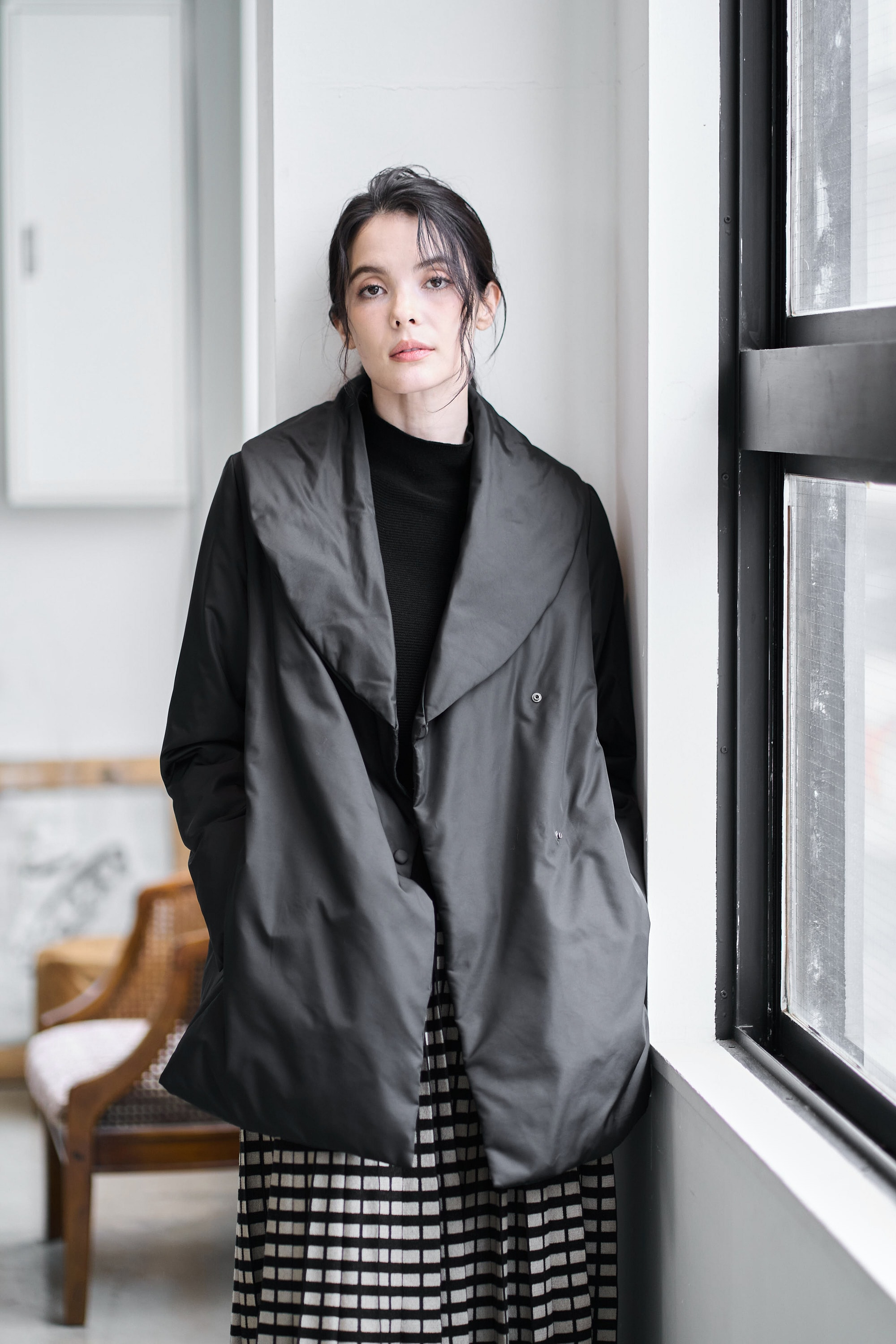 深みのある光沢感。大きめショールカラーがエレガントです。