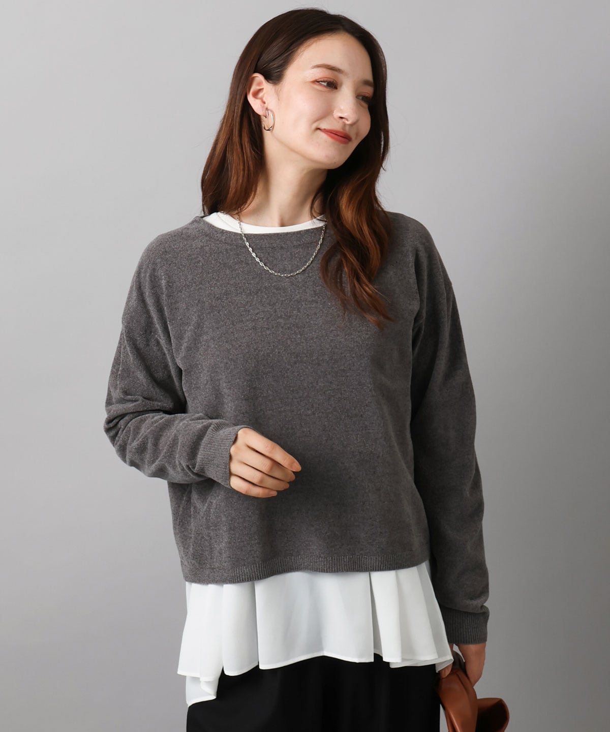 ソフトな肌触りのモールヤーン素材のニットで、ウールのチクチク感が苦手な方も着やすいです。