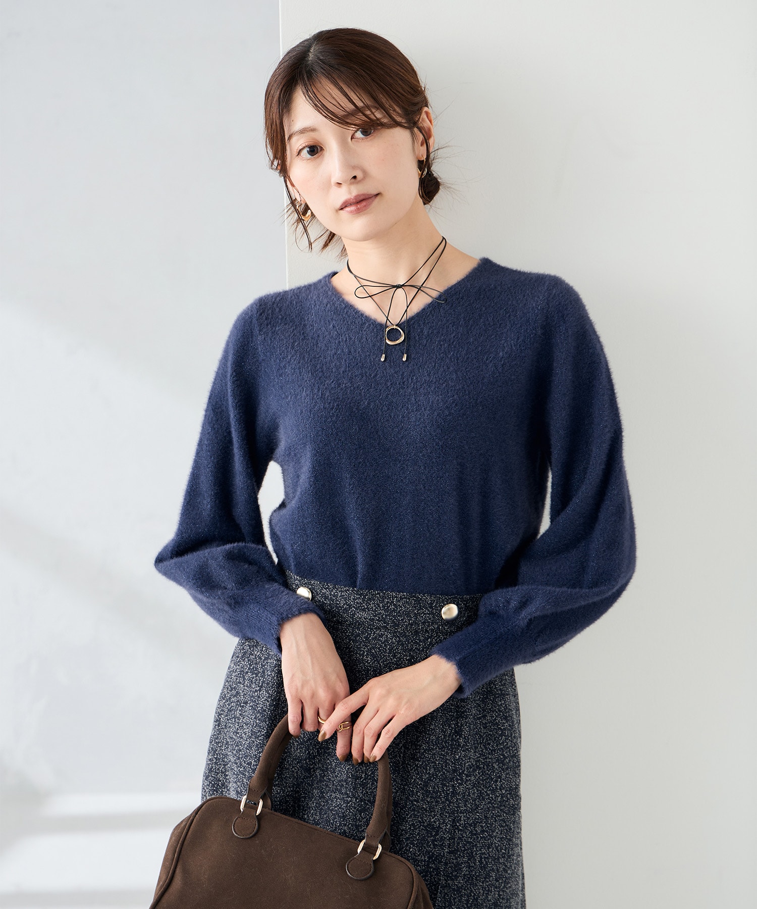 シンプルデザインながら、少し長めにとった袖口リブのパフ感が女性らしさを惹き立てます