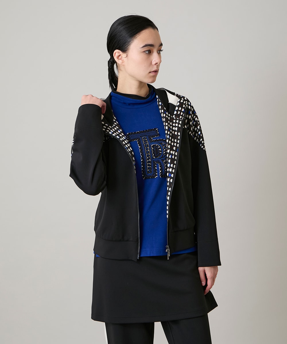 パーカーはワンピースと同じドット切り替えプリントで合わせても単品でもコーデしやすい一枚です。