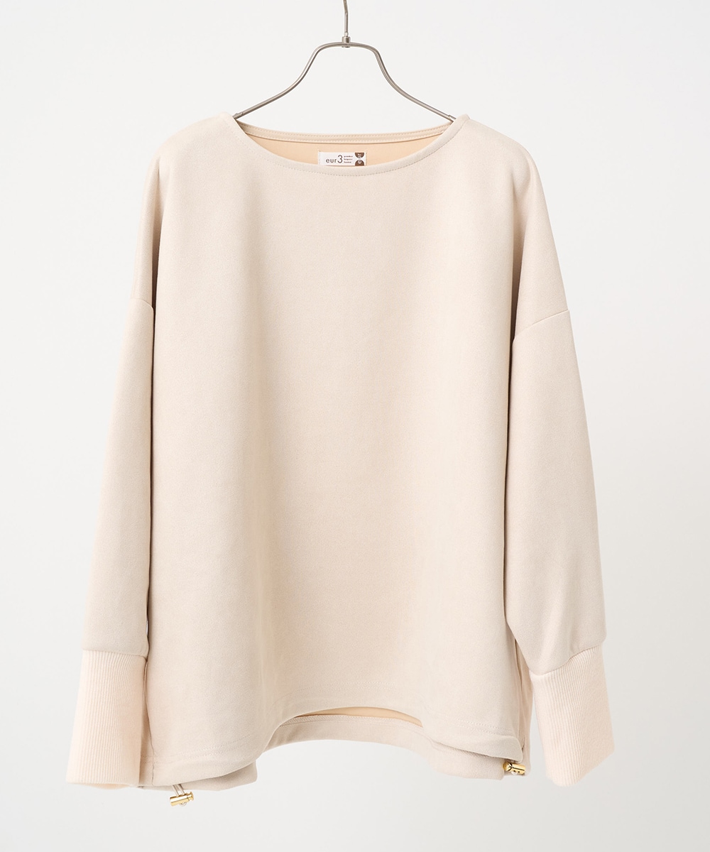 旅行やお出かけにぴったりの大人カジュアルスタイルを演出するダンボールスエードプルオーバー。