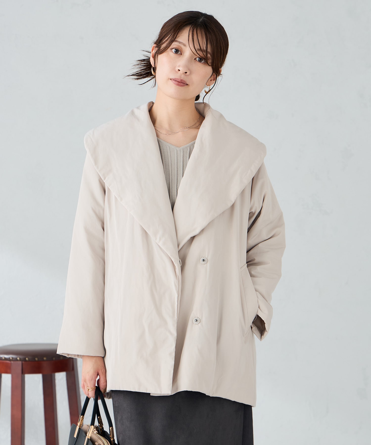 ・ショールカラー中綿コート