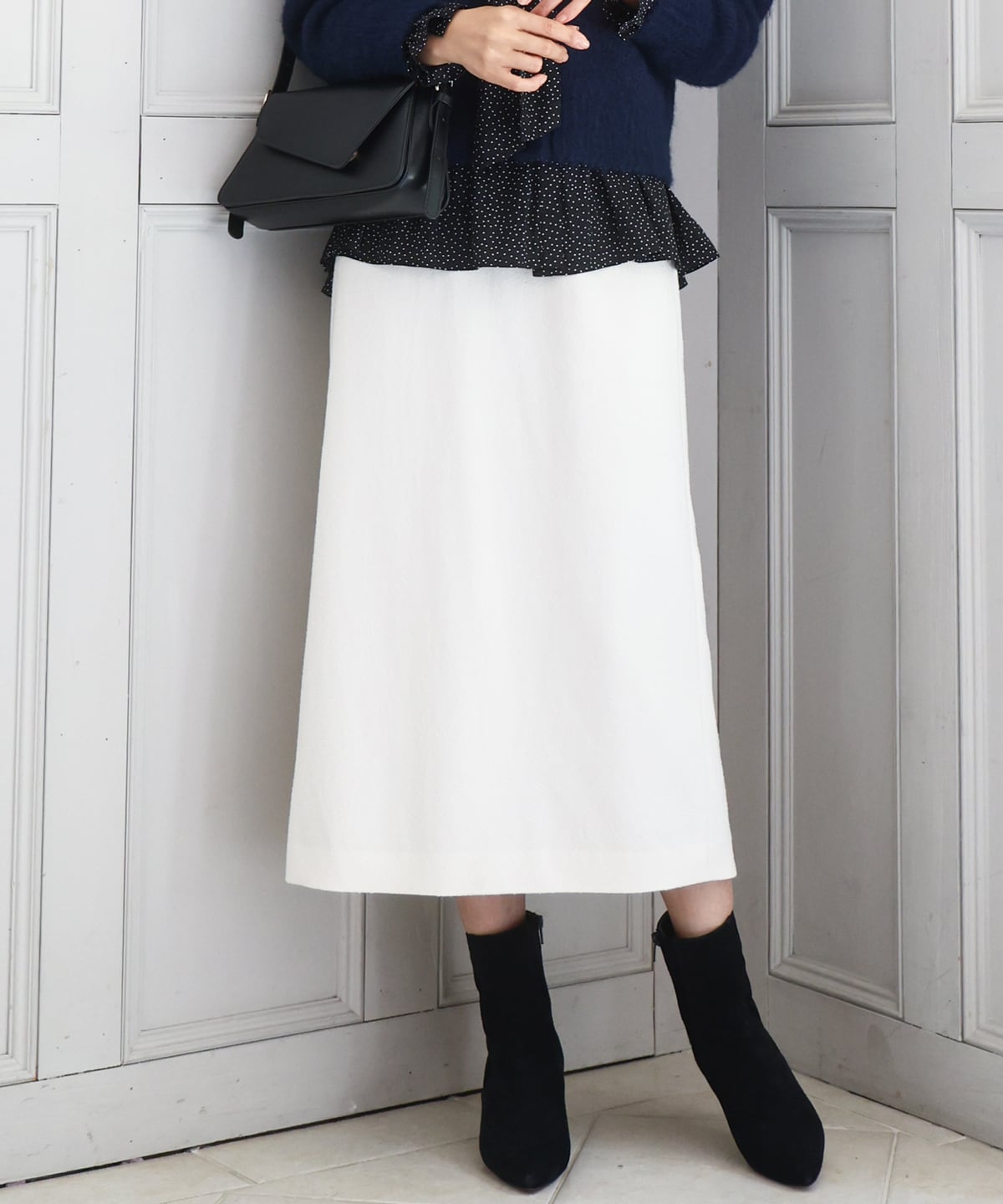 ネップ状の素材が暖か見えなすっきりシルエットスカート。