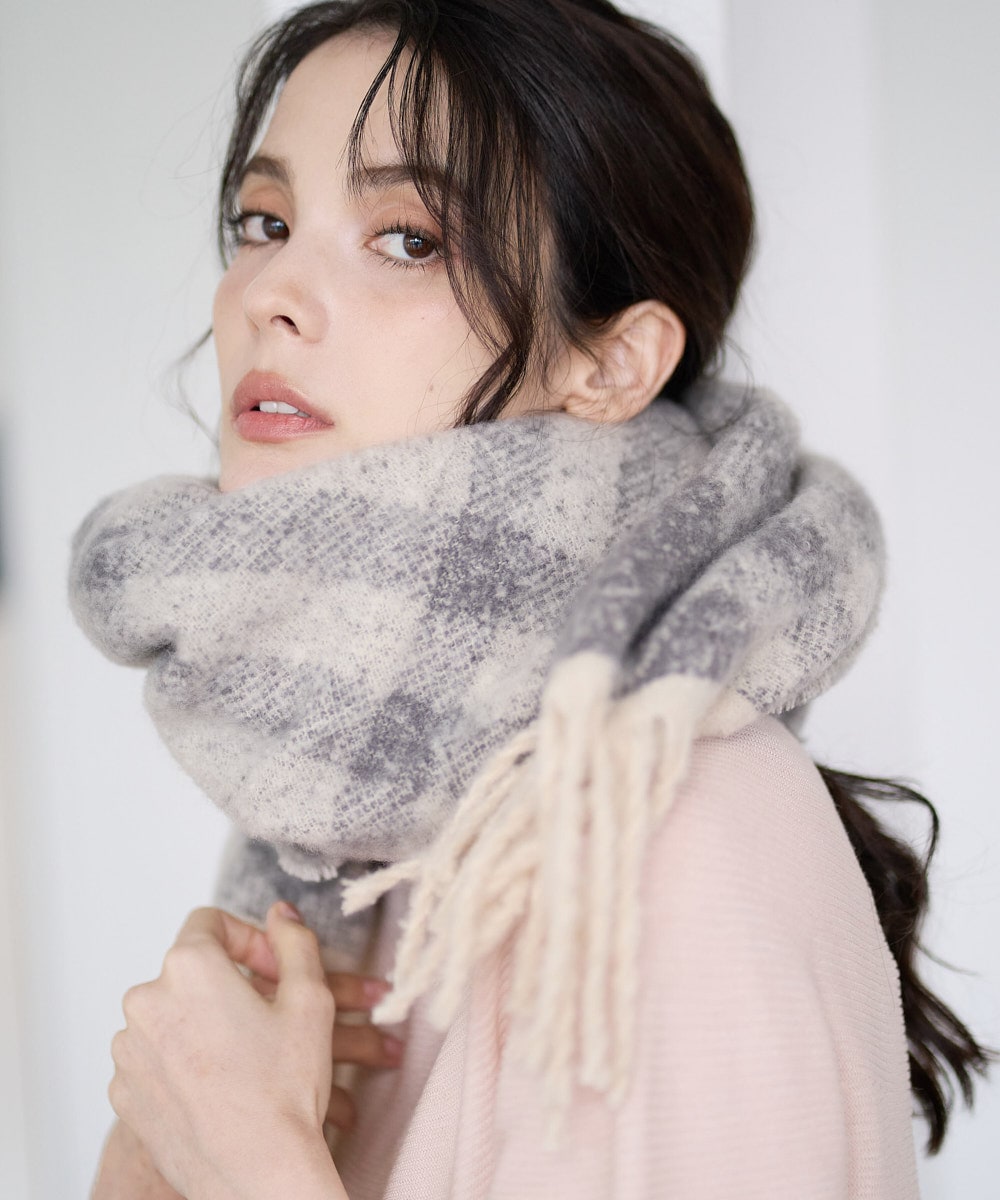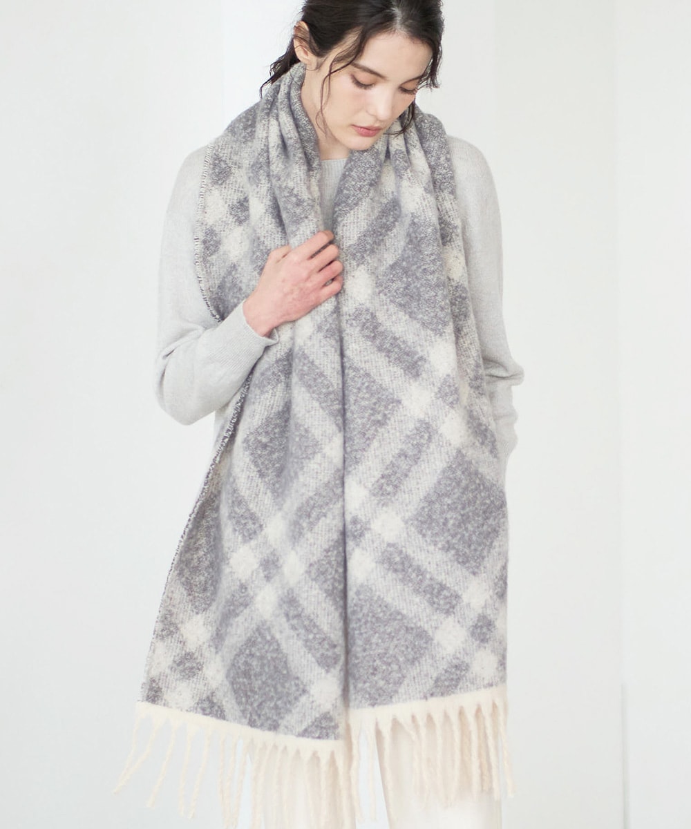 パイル地のような、フワフワストールで、うるさくならないチェックコーディネートの出来上がりです♪