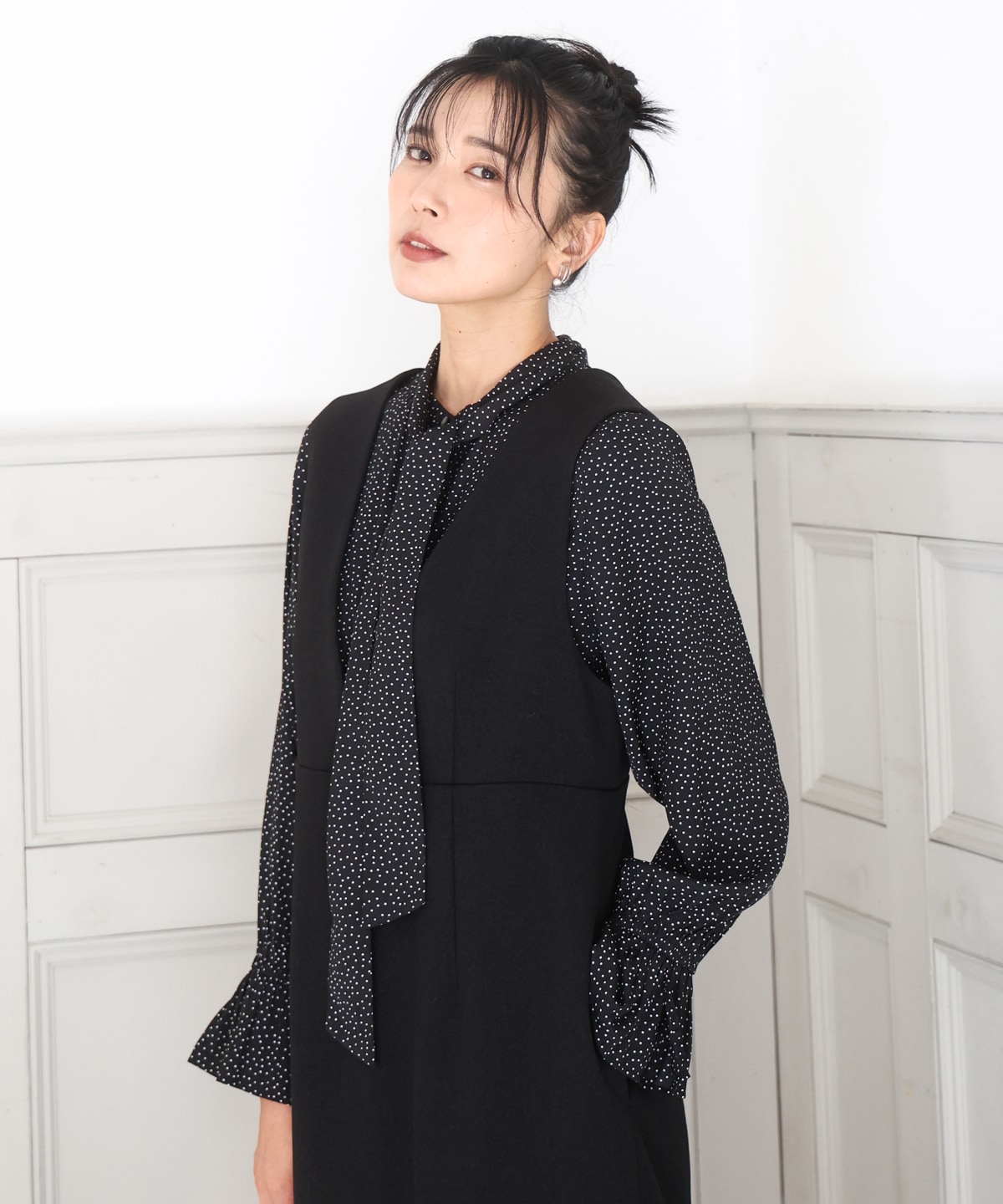ボウタイは取り外し可能でデザイン変化を楽しめます。さらっとしたポリエステル素材で季節を問わず着用していただけるのもポイントが高いです。