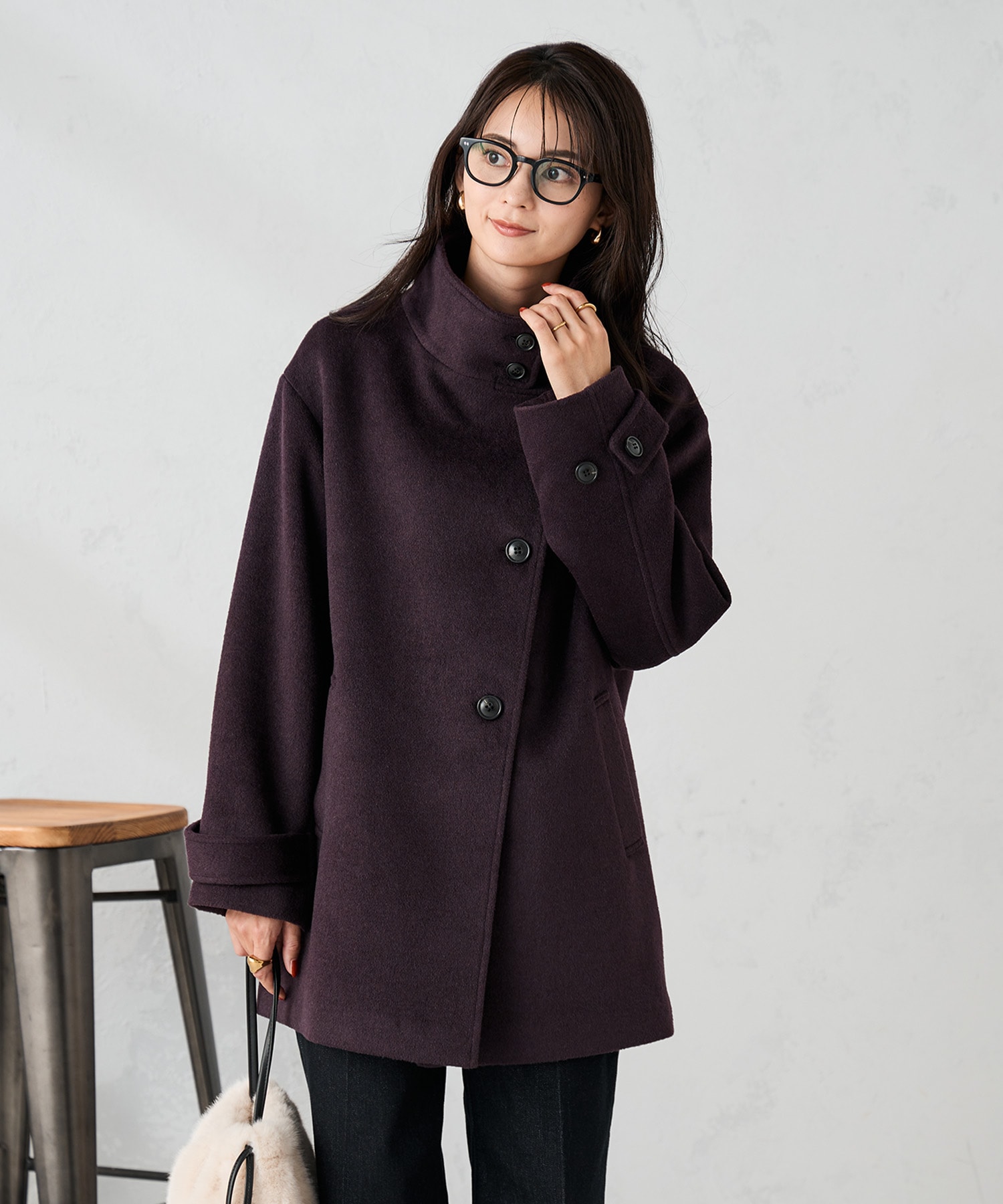 シックなボルドーのウールコートです♪