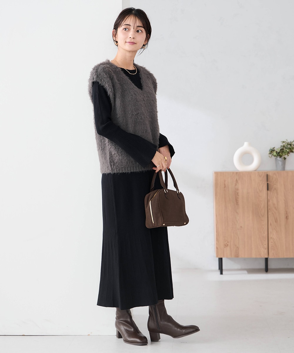 【2SET】フェザーベスト×フレアニットワンピース