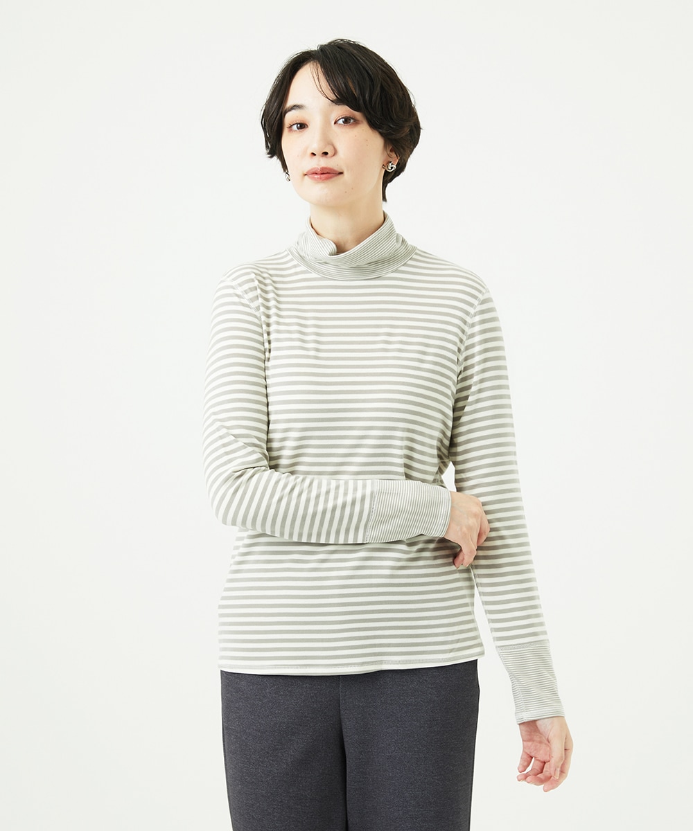 さらに、洗えるラグウォームボーダーカットソーは、二種類のボーダーデザインを組み合わせたタートルネックで、シンプルながらも楽しいアクセントをプラス。