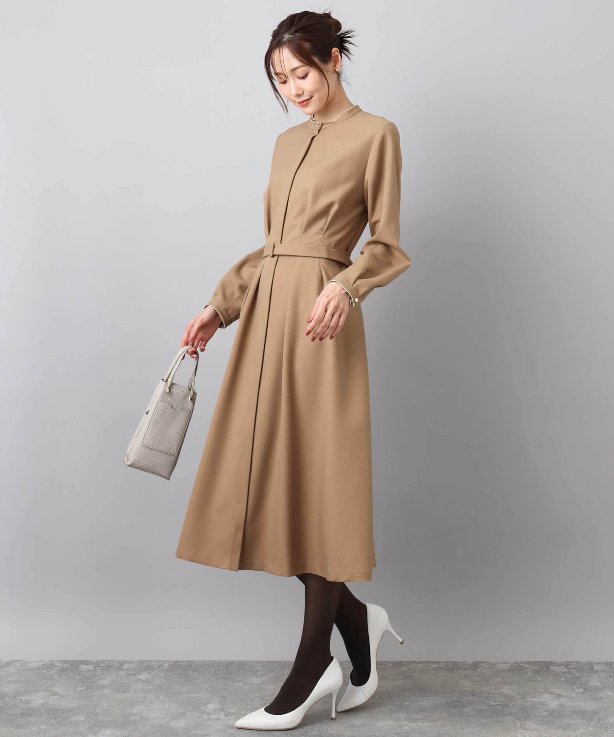 シンプルなデザインでウエストのタックがポイントのデザインワンピースです。