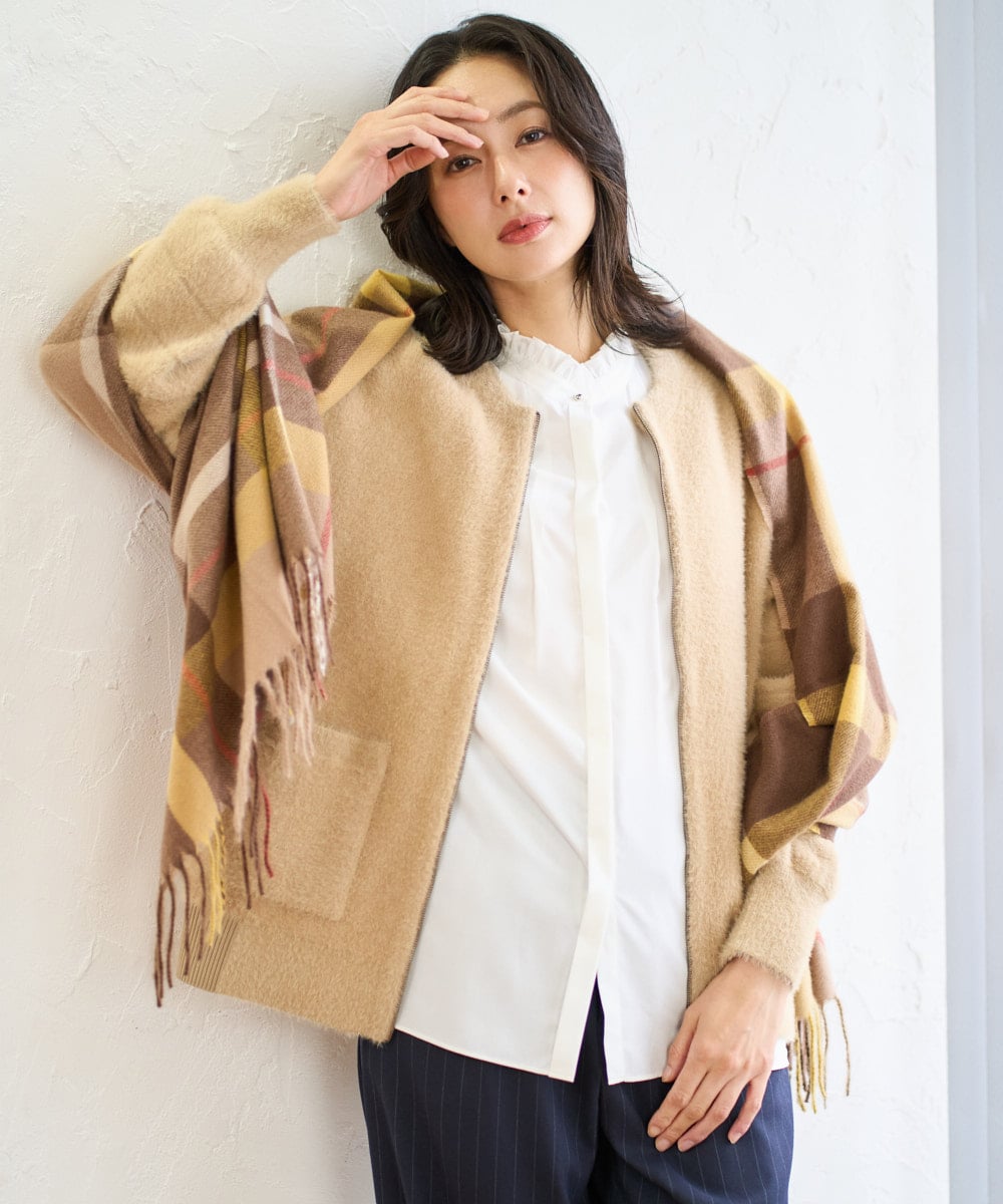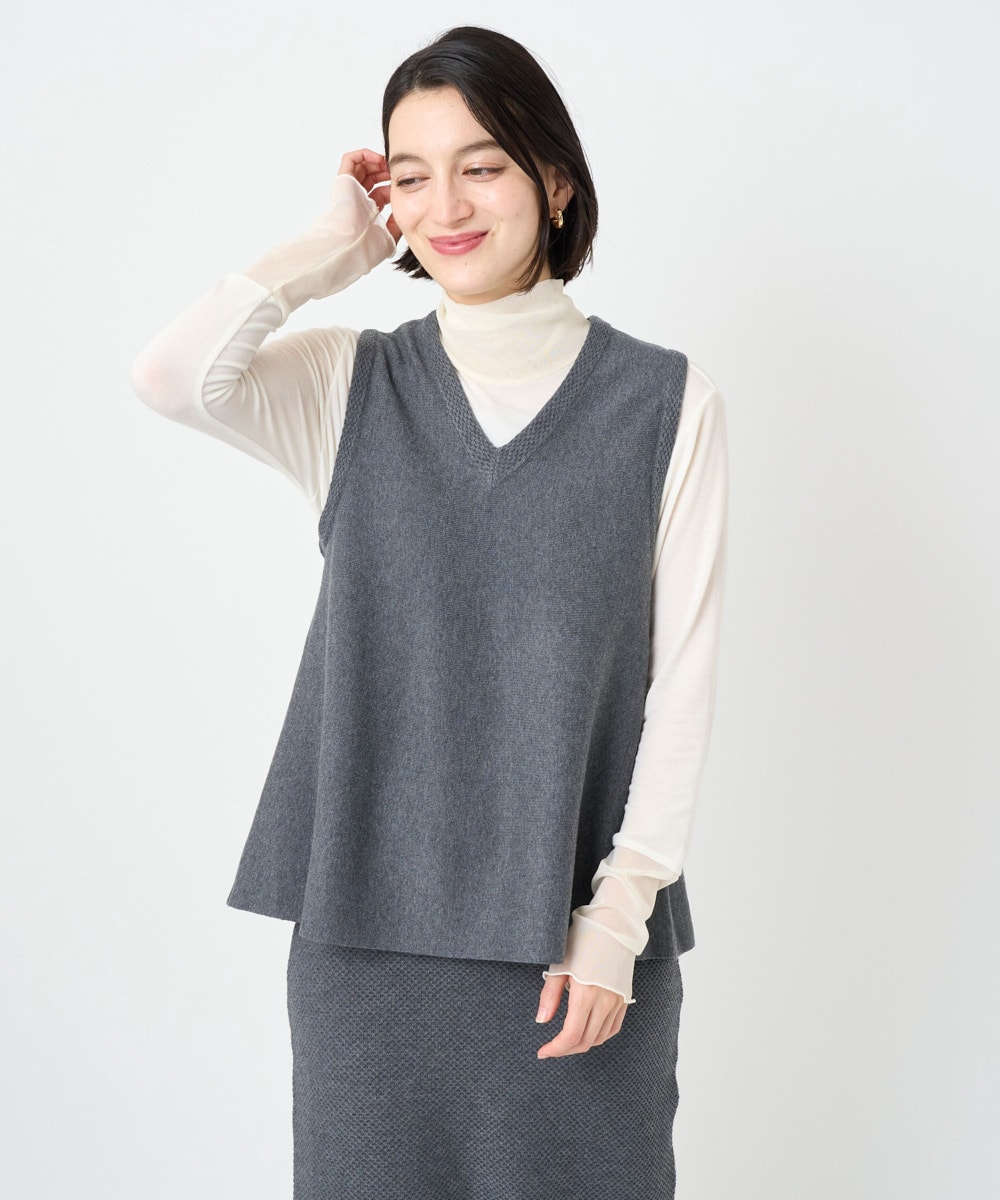 ベストは、Vネックで少しフレアなシルエットで綺麗なラインです。