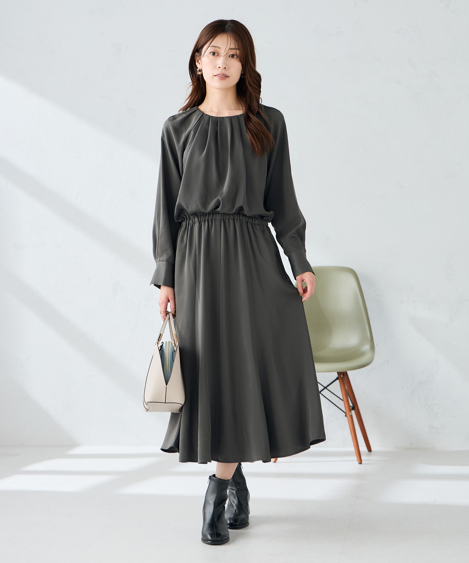 セットアップ見えするので、簡単に上品なスタイリングが決まるワンピースです