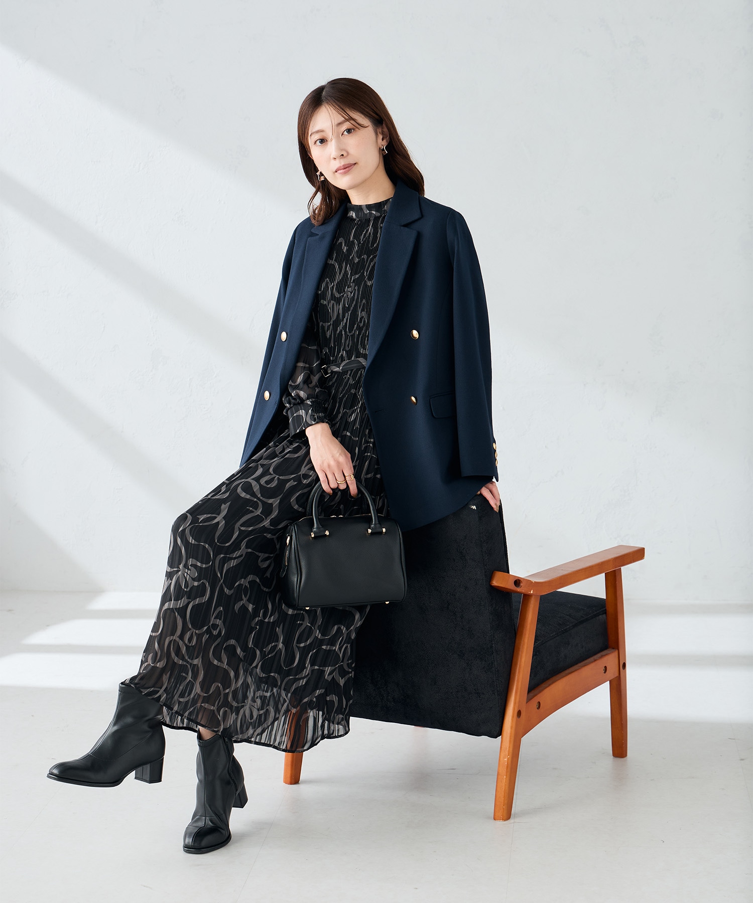BLACK☓素敵なデザインで甘くなりすぎず、着丈もしっかりあるので年代問わずお出かけから、お食事会にも上品に着用出来ます。