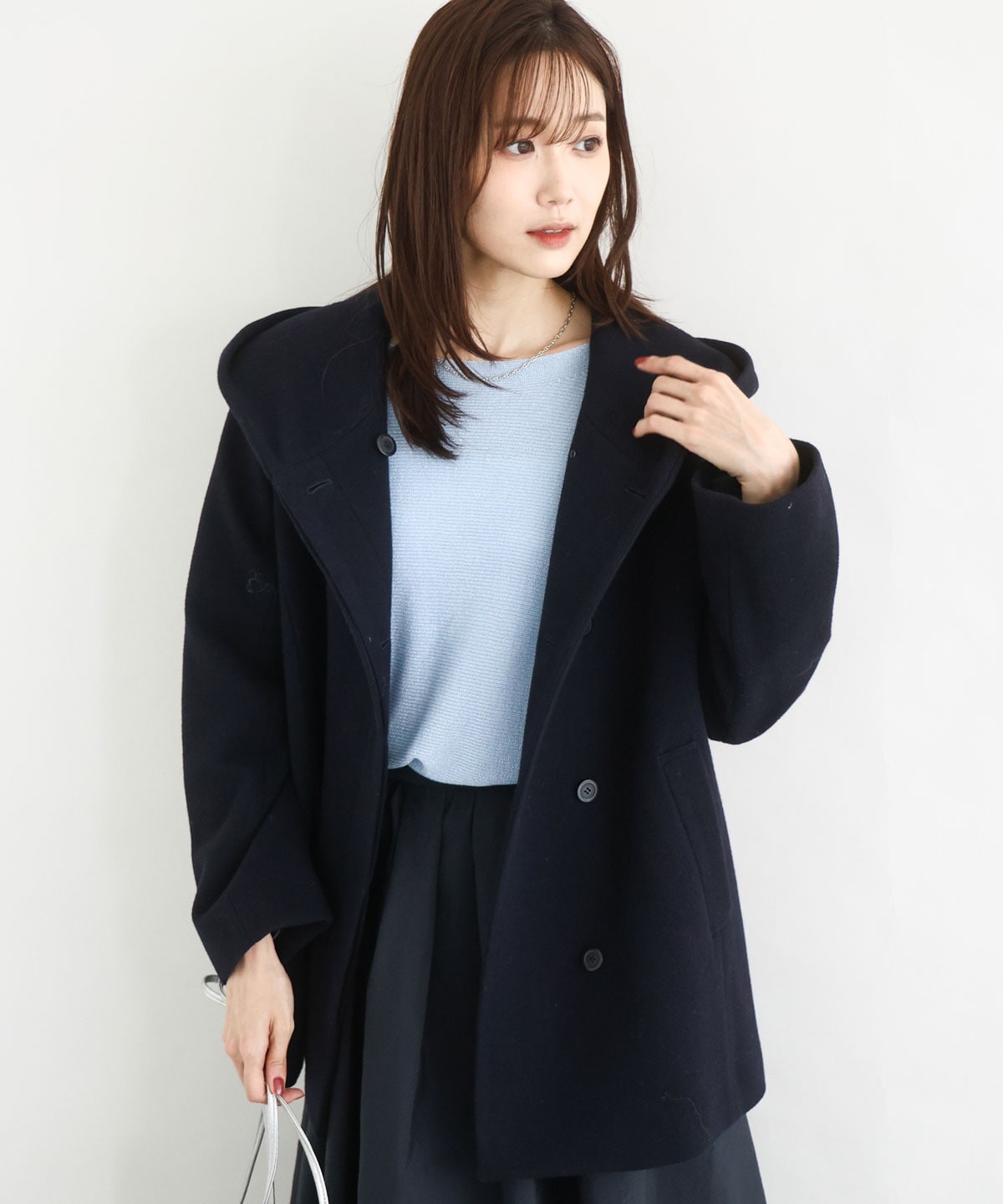 軽量のエアリアルウールフーデットコートは、フードの立ち上がりにこだわり、きれいめなシルエットをキープしながら、長時間の外出も快適に過ごせます。