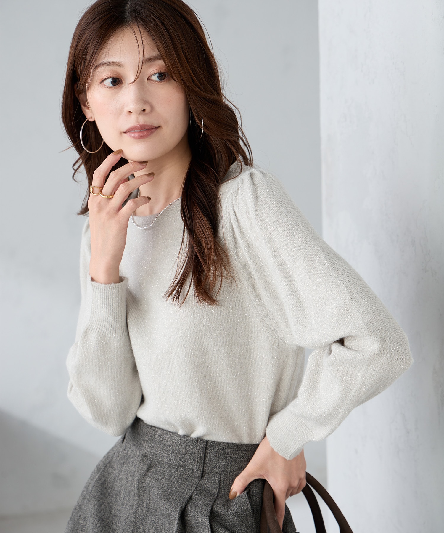 トレンドのスパンコール混グリッター素材を使用した、大人も着やすいスパンコールニットです!