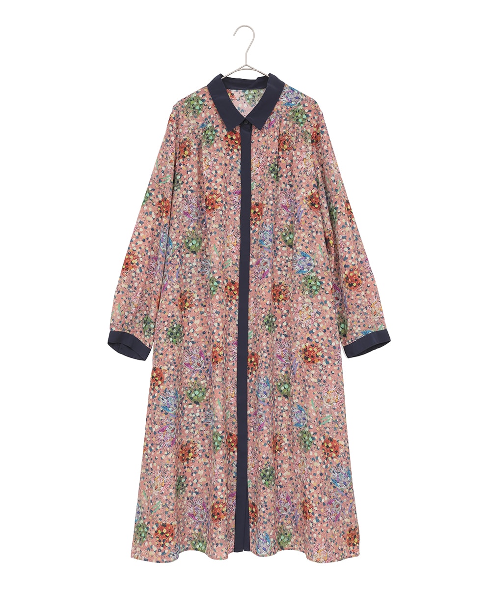 幾何フラワーアートプリントワンピースは、