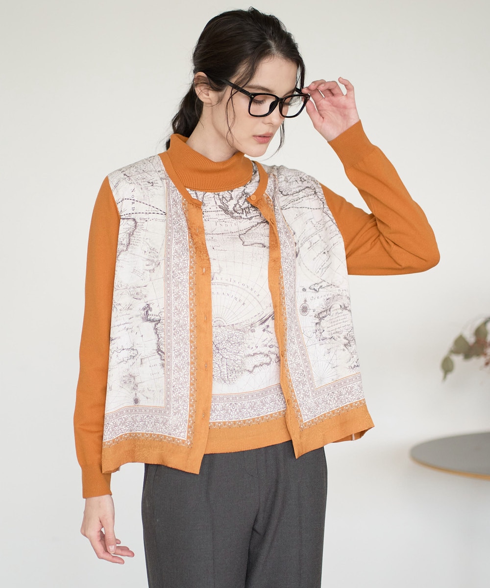 [アンサンブル対応]アートプリントドッキングニットカーディガン