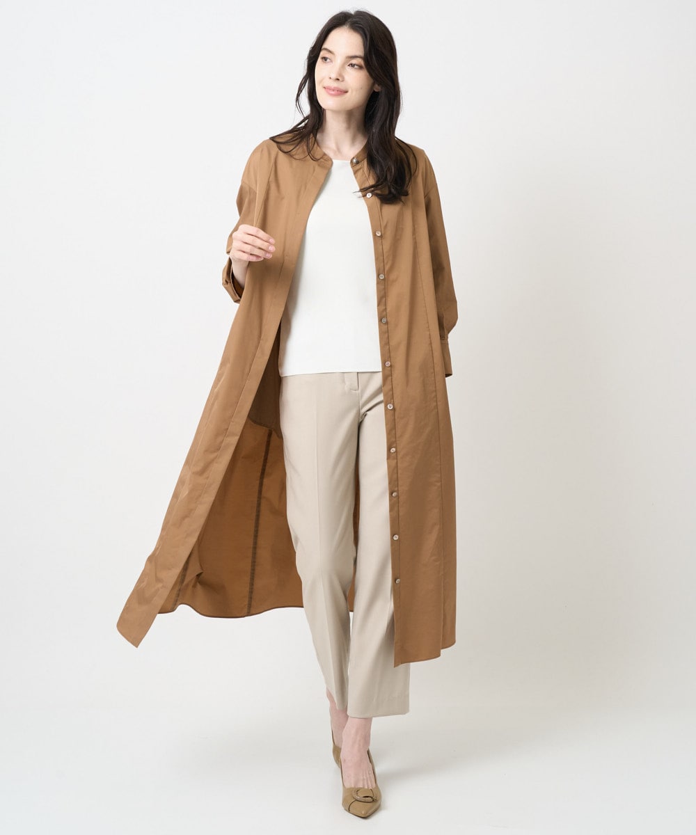 スタンドカラーでプリンセスラインにタフタ特有のハリを活かした、しなやかなフォルムとドロップショルダーのデザインがリラックスムード漂う一着。秋冬の幅広いコーディネートで活躍してくれる万能アイテム。