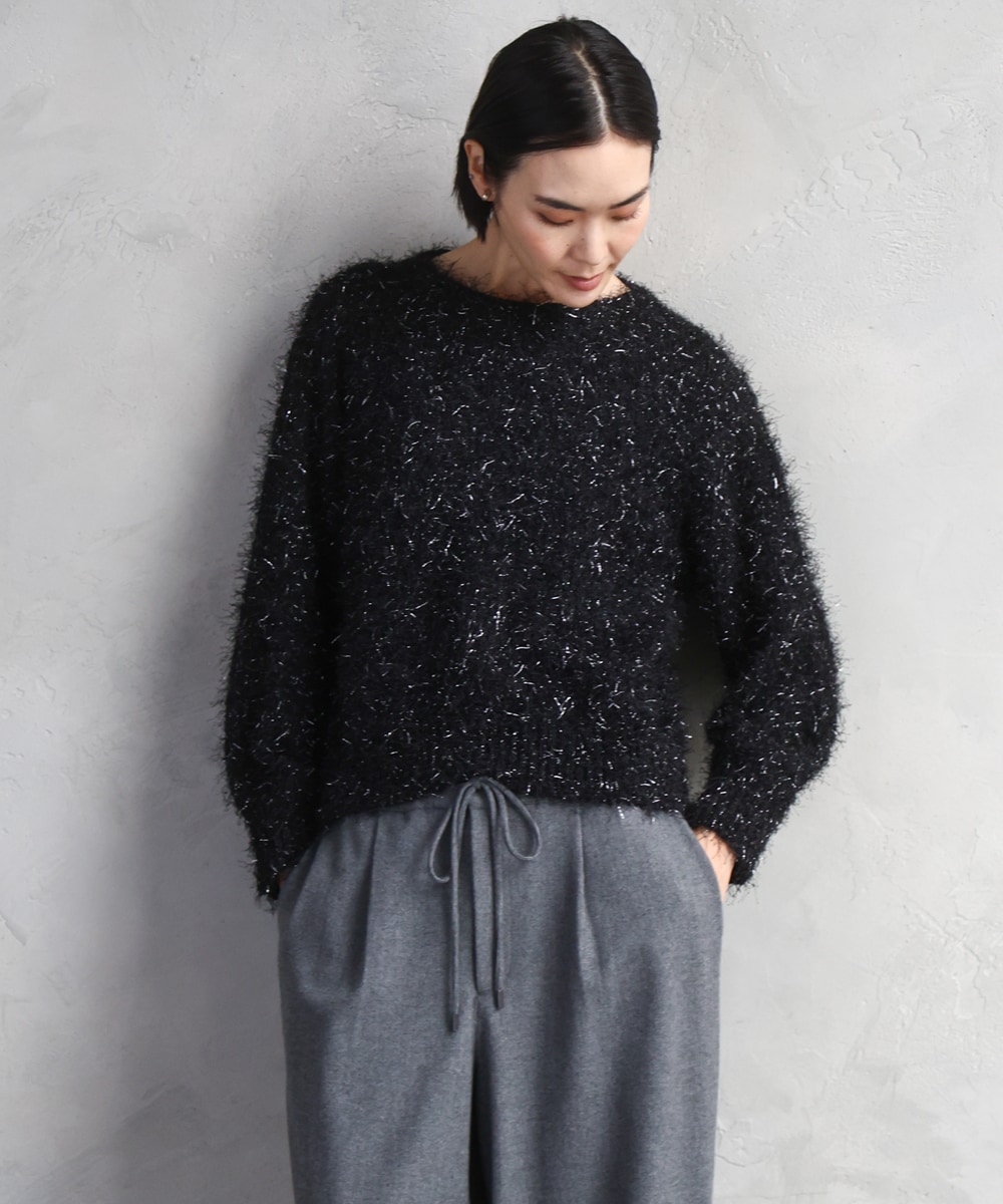 ラメ入りですがふんわりした素材感でチクチク感無く着られました。