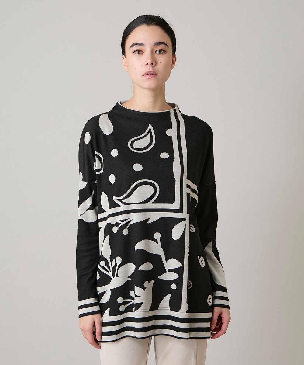 インナーにはペーズリー柄を大胆にプリントしたチュニックをコーディネートしました。