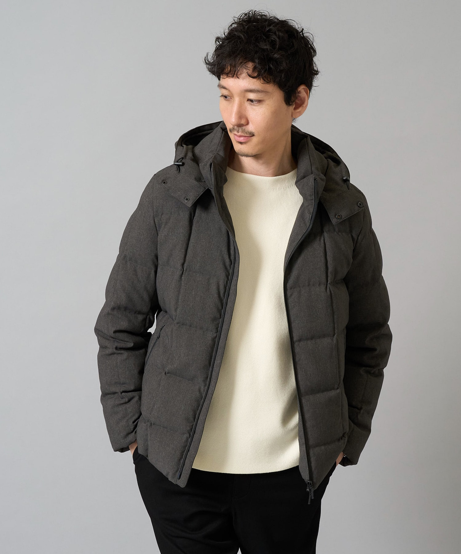 【ダウン混率90%/軽量/撥水】デタッチャブルフードストレッチダウンブルゾン
