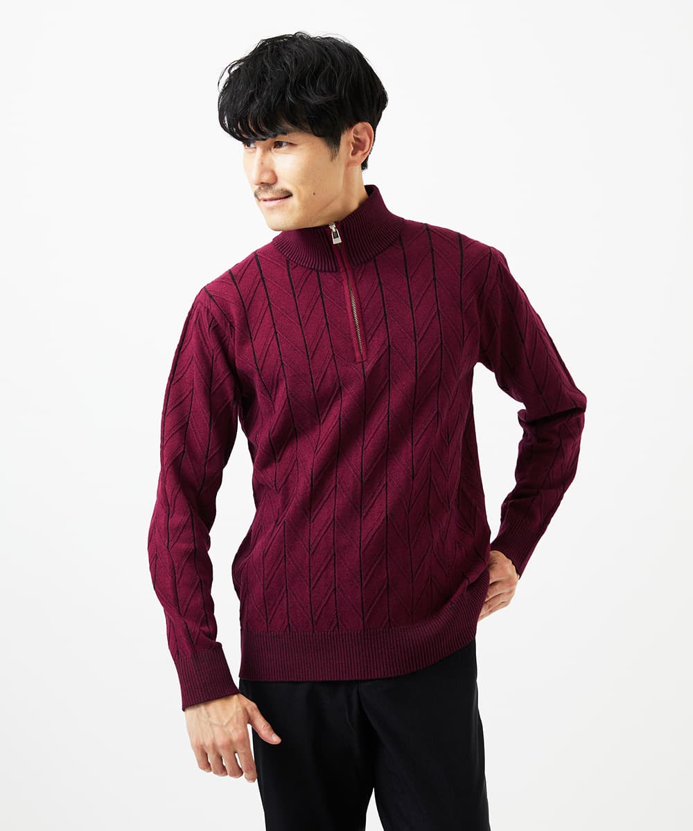 【洗える/リサイクル糸使用】ハーフジップニット / ミックスヘリンボン