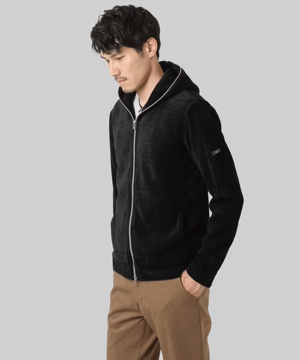 【洗える/ストレッチ】ワッフルベロア ジップパーカー