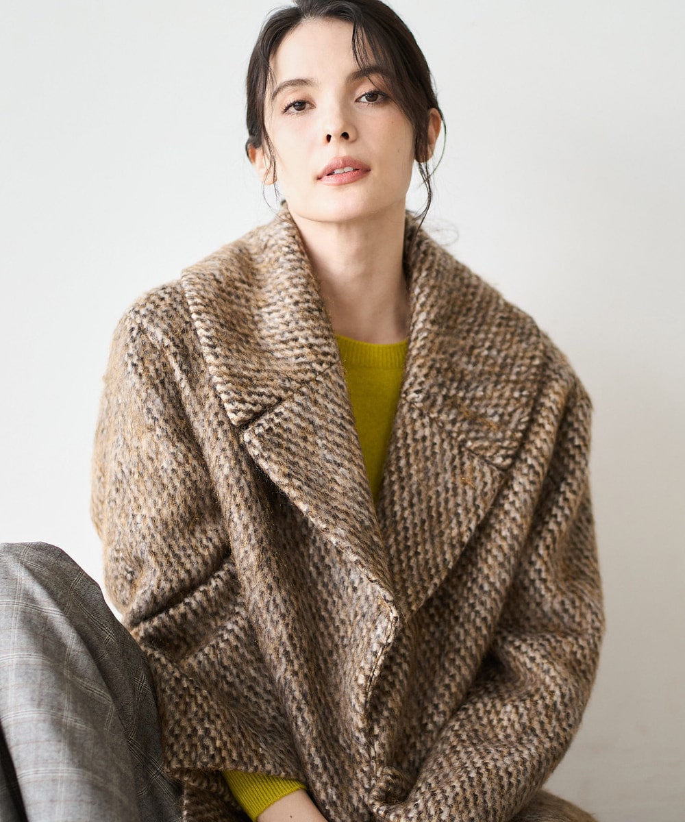 シャギーオーバーコートは、絶妙なシルエットと華やかな衿元で、