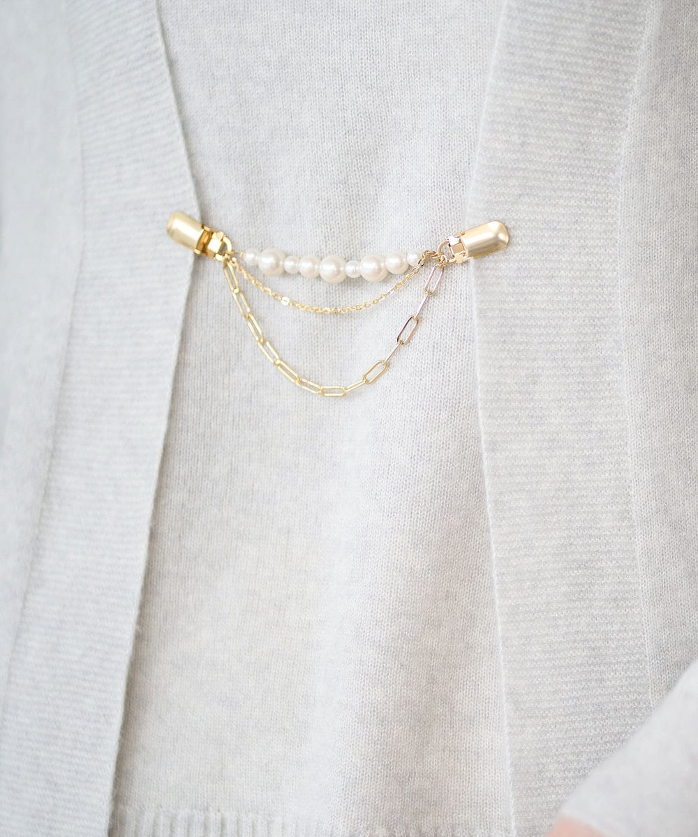 パールチェーンクリップや上質のニット素材との組み合わせで、上質さと華やかさをプラス。