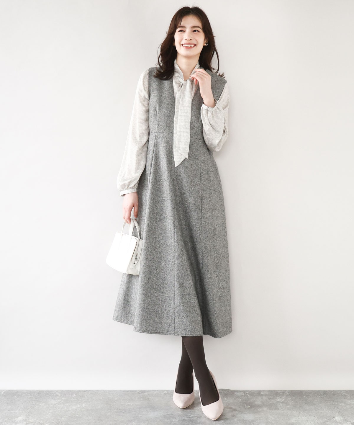 ラメツイードVネックジャンパースカート/洗える/WEB限定サイズあり