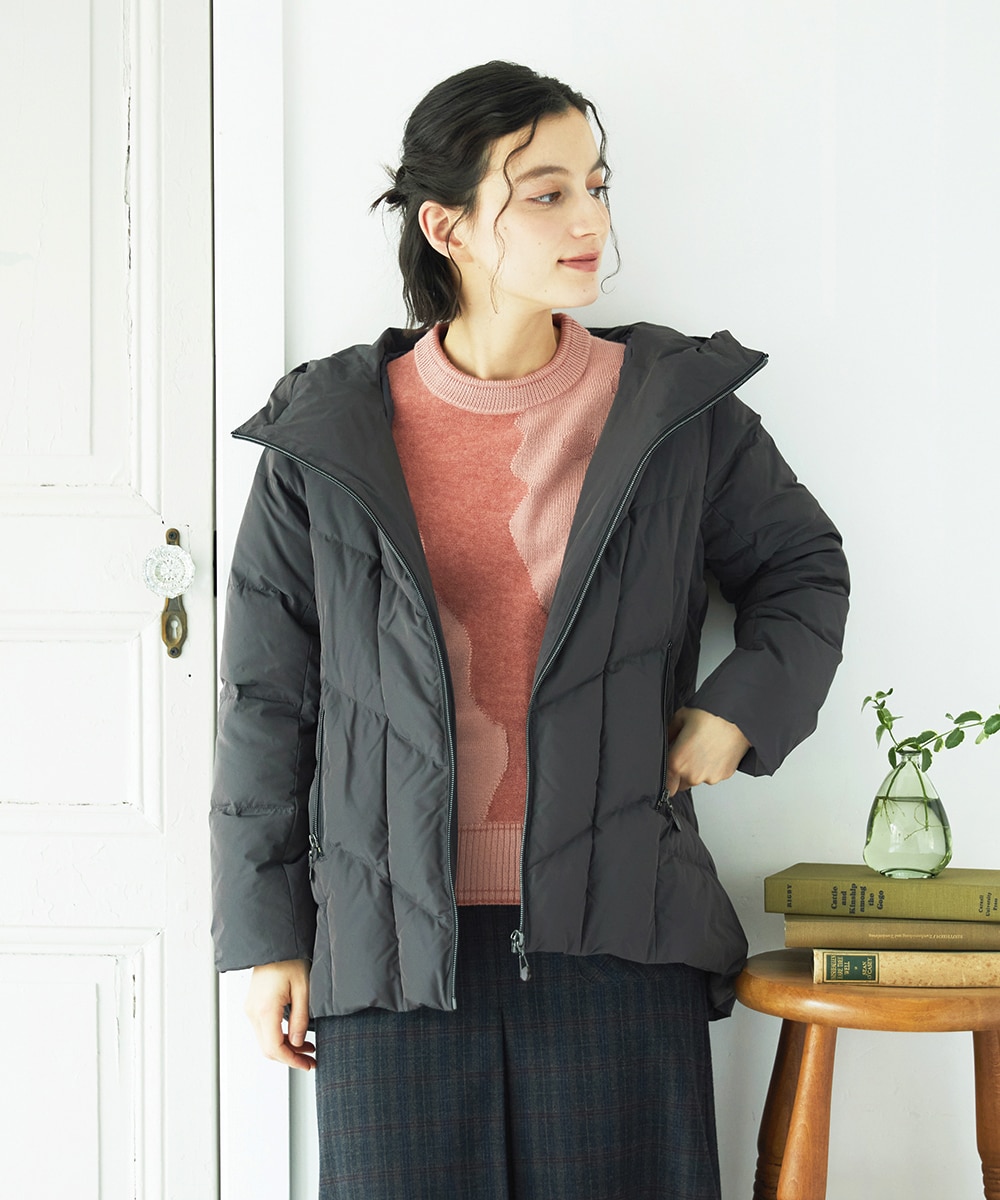 アウターは流行に左右されず長く着られるキルトステッチダウン。