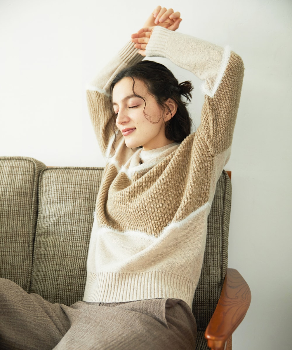 シンプルで合わせやすさがありながらも、コーデのアクセントになるニット。