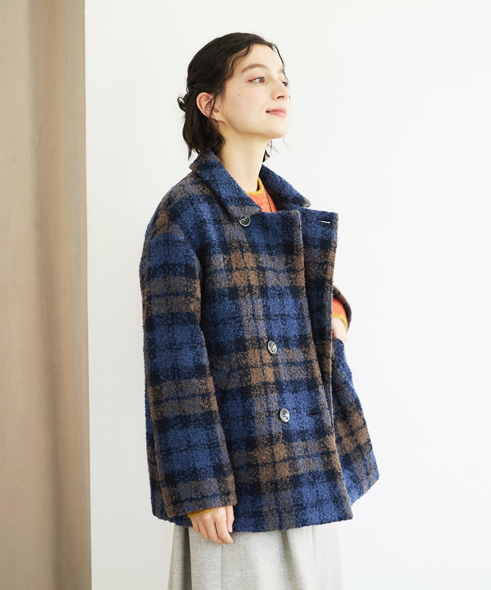 存在感抜群のチェックのコートで冬の街並みにも映えるコーデに。